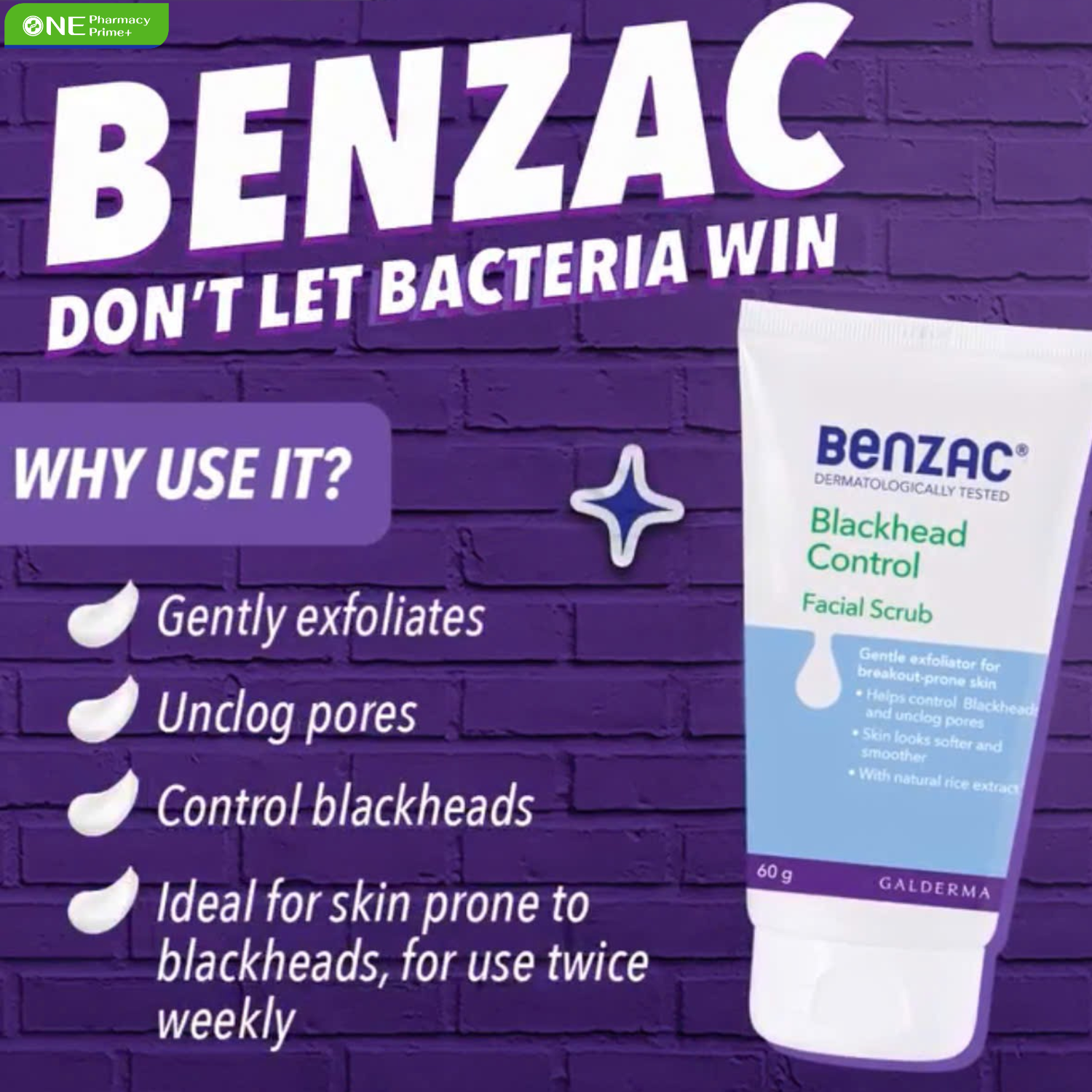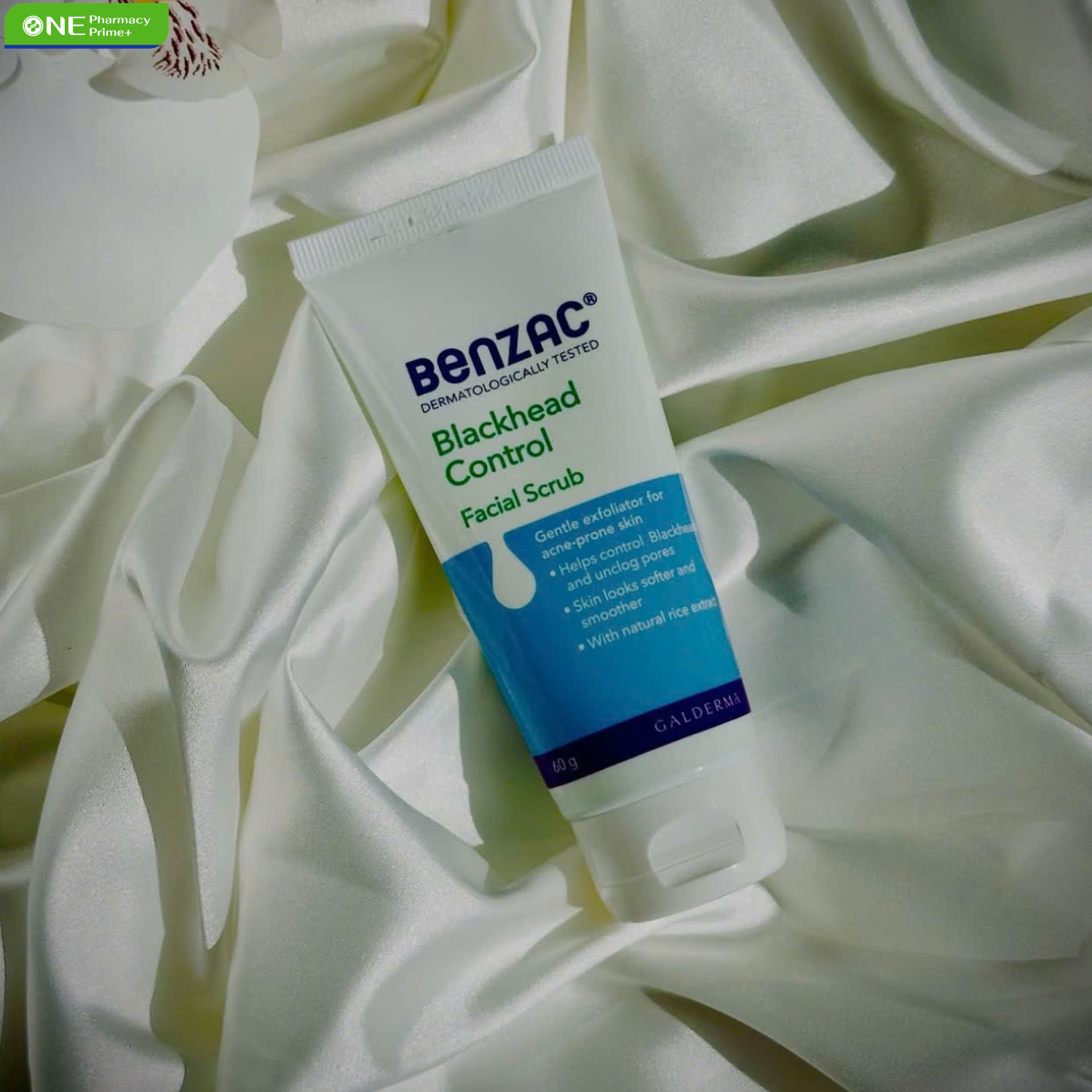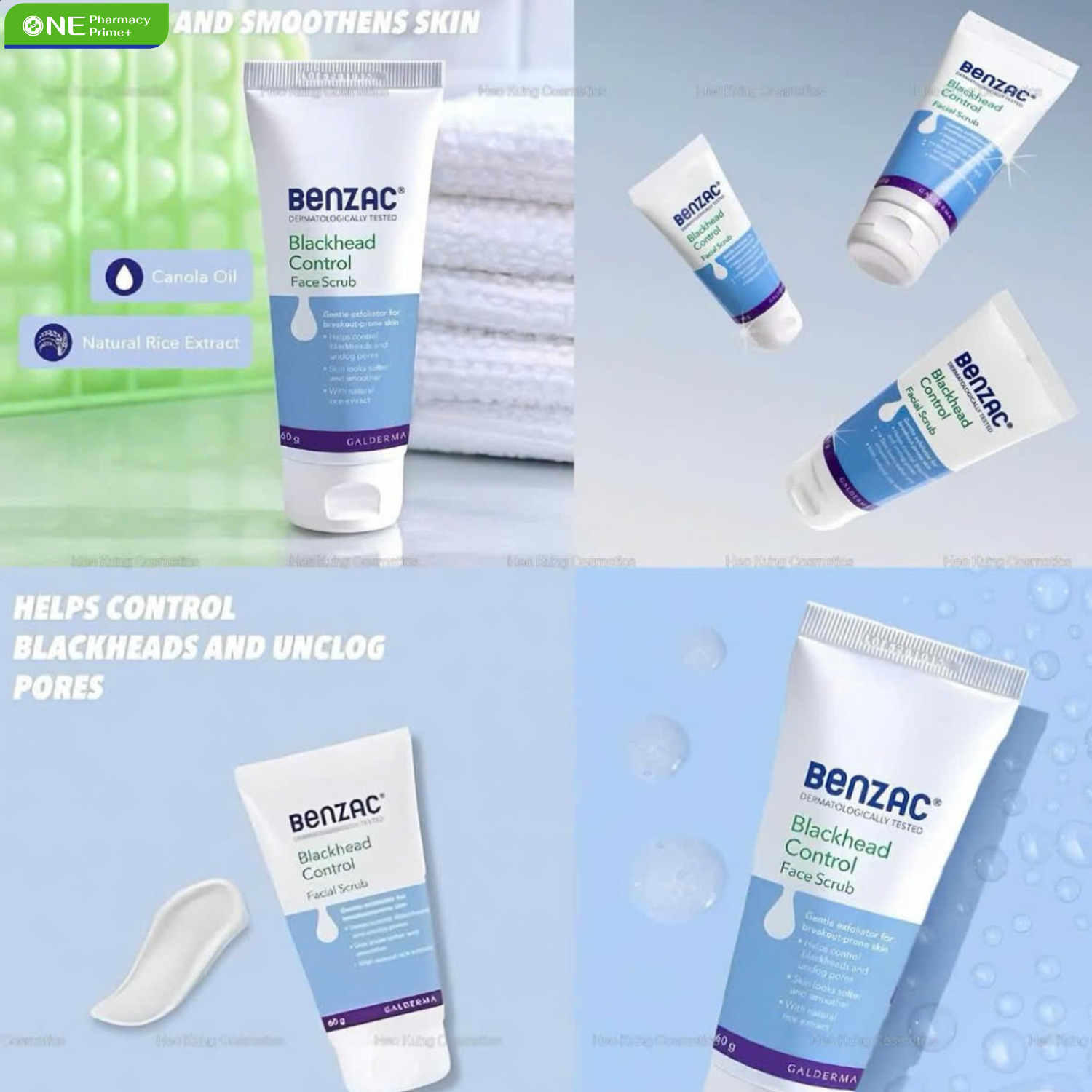 Benzac Blackhead Control Scrub là sản phẩm làm sạch kết hợp tẩy tế bào chết vật lý thuộc thương hiệu Galderma (Pháp), thường sản xuất tại Brazil. Sản phẩm phù hợp cho da dầu mụn, đặc biệt là da có mụn đầu đen.