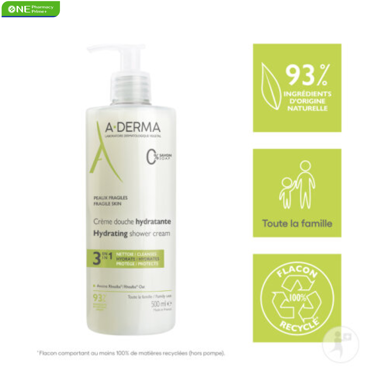 A‑Derma Crème Douche Hydratante 3en1 500ml là sản phẩm làm sạch toàn thân, mặt và tóc với công thức dưỡng ẩm dịu nhẹ, phù hợp cho da khô, nhạy cảm và dễ kích ứng. Sản phẩm chứa thành phần chính chiết xuất từ yến mạch Rhealba® hữu cơ, giúp làm sạch mà không làm khô da, đồng thời làm mềm và bảo vệ hàng rào da sau khi tắm