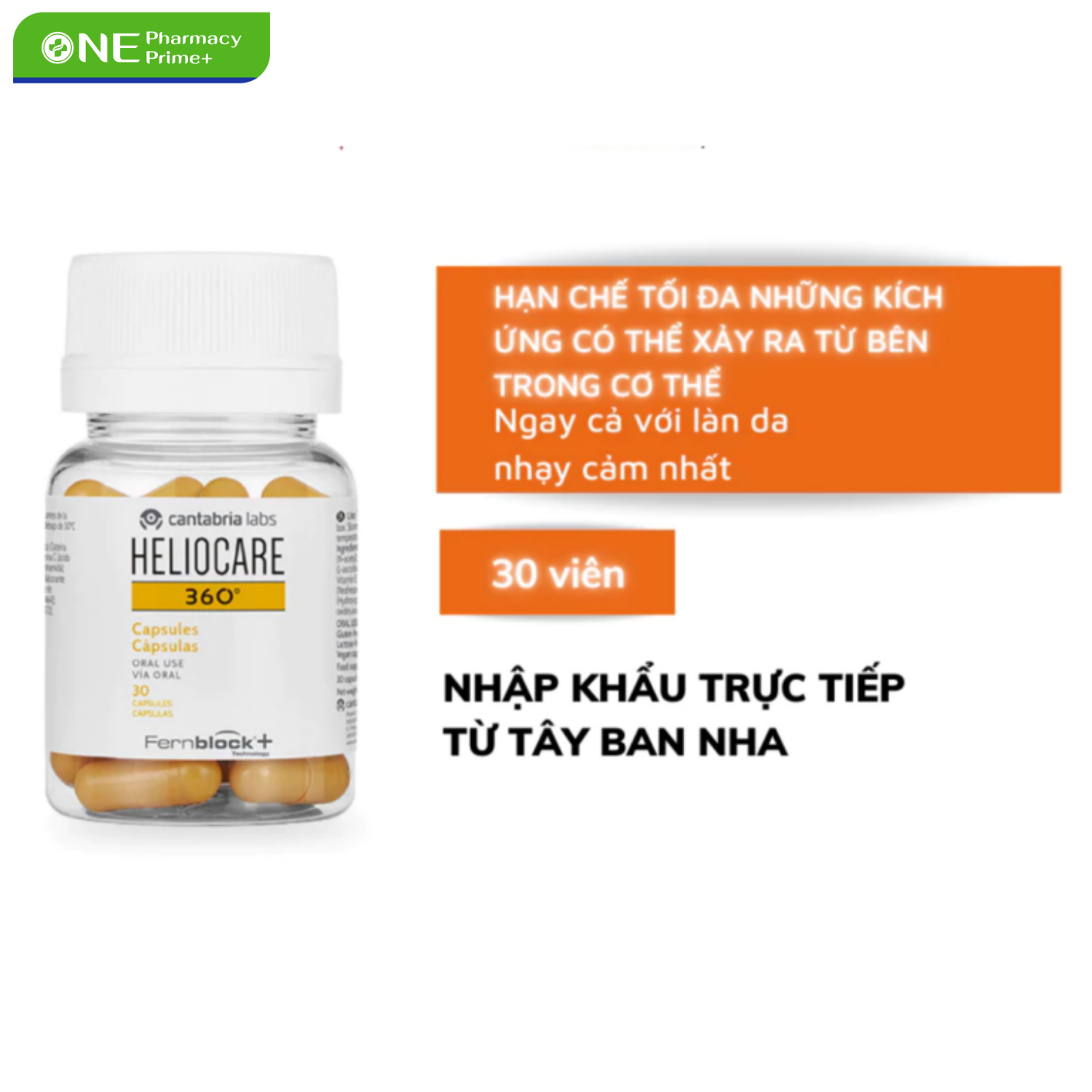 Heliocare 360º Oral Capsules là viên uống hỗ trợ bảo vệ da trước tác hại của tia UV, ánh sáng xanh và ô nhiễm môi trường. Sản phẩm hoạt động theo cơ chế bảo vệ da từ bên trong, giúp tăng cường khả năng chống oxy hóa và hỗ trợ duy trì làn da khỏe mạnh khi tiếp xúc ánh nắng. Sản phẩm không thay thế kem chống nắng, mà đóng vai trò hỗ trợ, giúp tăng hiệu quả bảo vệ da toàn diện hơn.