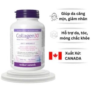 Viên uống Collagen30 Webber Naturals Bí quyết giữ gìn làn da tươi trẻ! chỉ với 1 viên mỗi ngày, làn da bạn sẽ trở nên căng mịn, đàn hồi, mờ dần nếp nhăn và luôn rạng rỡ.chiết xuất Collagen thủy phân dễ hấp thu – nuôi dưỡng từ bên trong, tỏa sáng từ bên ngoài.
