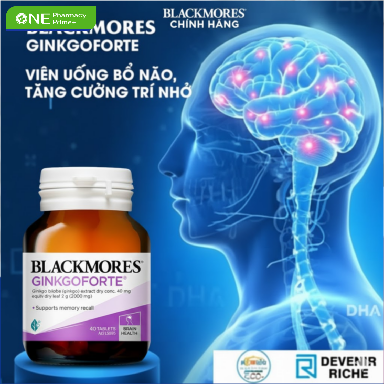 Viên Uống Hỗ Trợ Trí Não Giảm Tiền Đình Blackmores Ginkgo Forte – Hộp 40 Viên