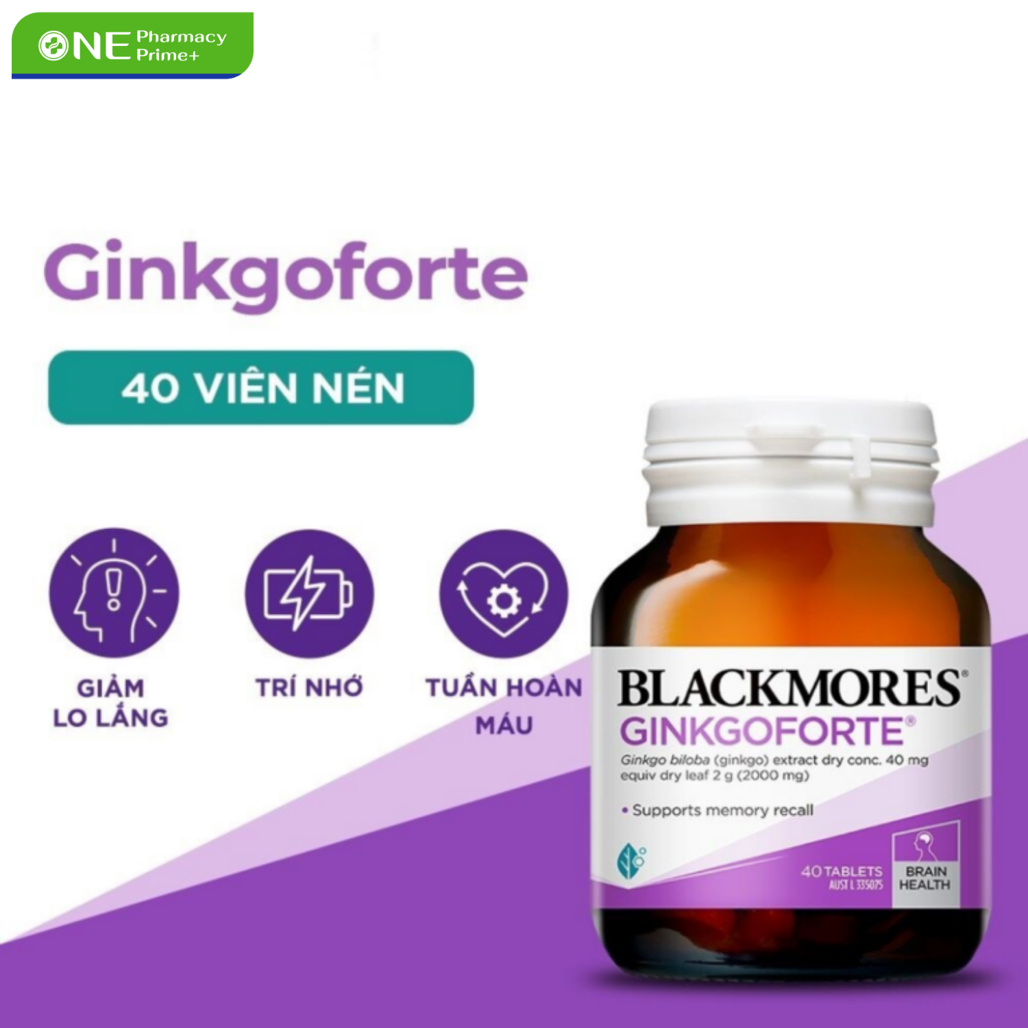 Blackmores Ginkgo Forte là sản phẩm giúp hỗ trợ tuần hoàn não, cải thiện trí nhớ và giảm các triệu chứng rối loạn tiền đình một cách an toàn. Blackmores Ginkgo Forte là viên uống bổ sung chiết xuất lá bạch quả (Ginkgo biloba) hàm lượng cao, giúp tăng lưu thông máu lên não, hỗ trợ chức năng não bộ và hệ thần kinh. Sản phẩm đến từ thương hiệu Blackmores (Úc) – nổi tiếng toàn cầu với các dòng thực phẩm bổ sung chất lượng cao.