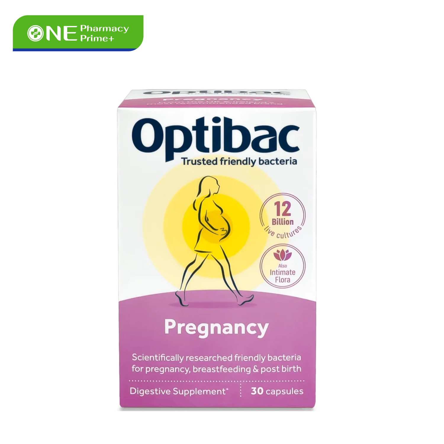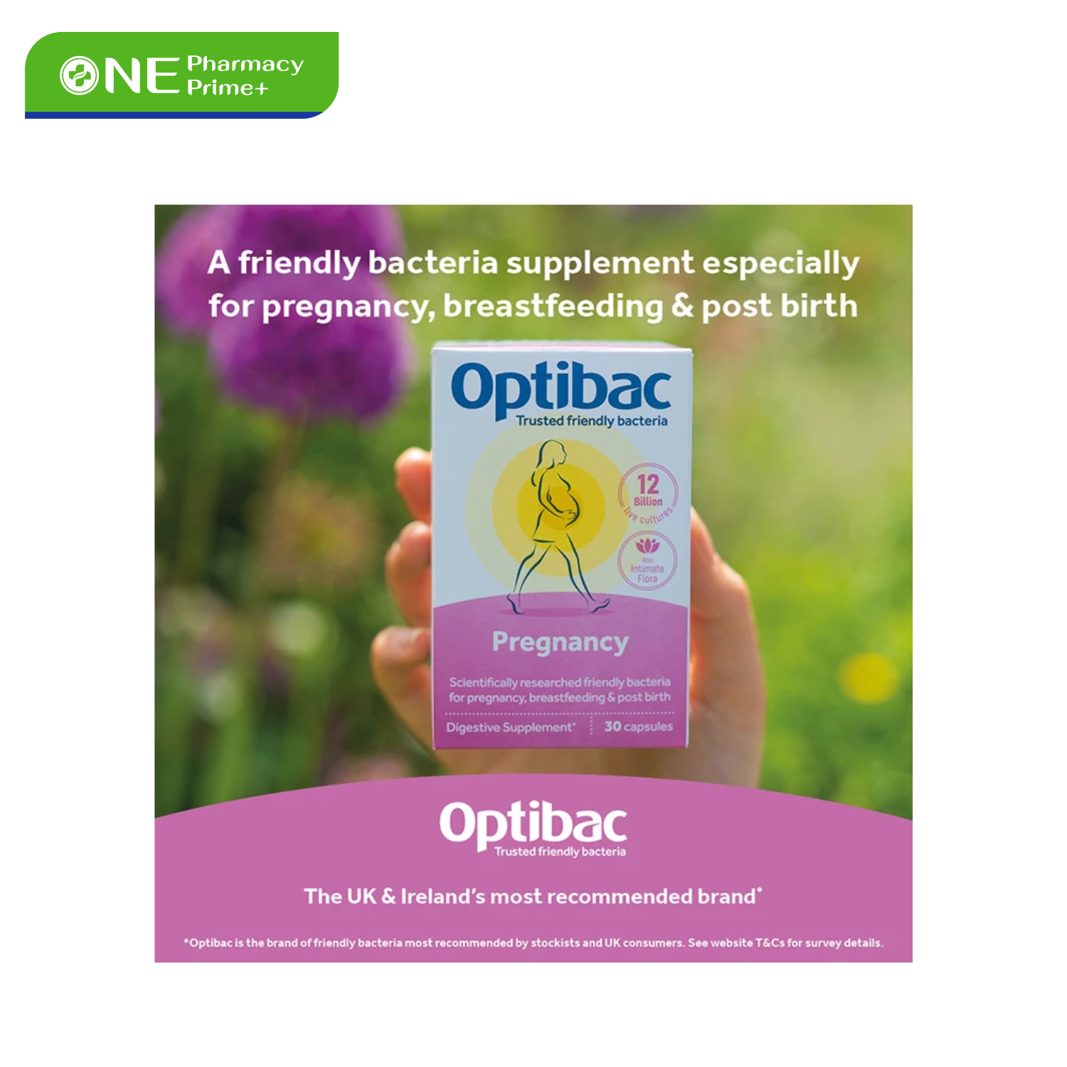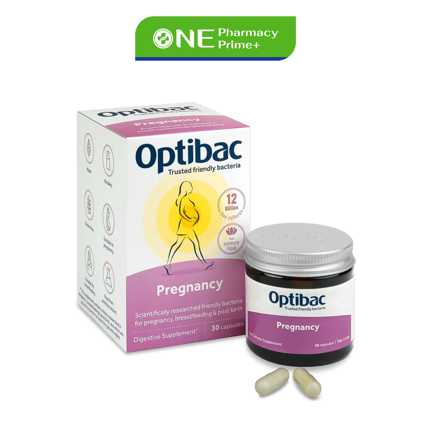 - Chất xơ hòa tan FOS (Fructooligosaccharides): 30mgOptibac Pregnancy – 30 viên không chứa gluten, sữa, đậu nành hay chất bảo quản nhân tạo. Sản phẩm phù hợp với người ăn chay và đã được nghiên cứu về độ an toàn khi sử dụng cho phụ nữ mang thai. Các lợi khuẩn trong viên uống có khả năng tồn tại tốt trong môi trường axit dạ dày, giúp tối ưu hiệu quả khi đi vào đường ruột.