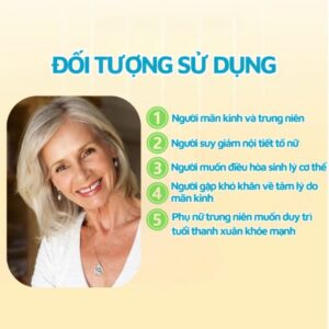 - Đối tượng: Phụ nữ từ 30 tuổi trở lên, đặc biệt là người có dấu hiệu suy giảm nội tiết, da lão hóa, hay mệt mỏi.