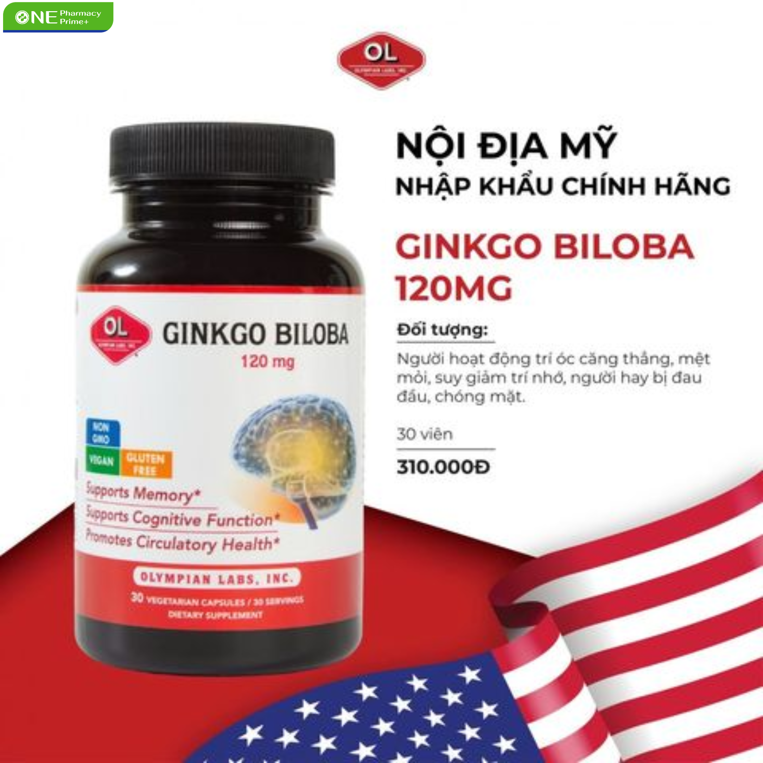 Viên Uống Olympian Labs Ginkgo Biloba 120mg Bổ Não – 30 Viên